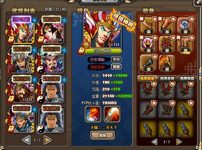 诸葛,必须的。你现在如果诸葛一号装,那没必要搞周瑜。装备没祭炼,将灵又不多,终极周瑜还是可能被神将被连死,终极诸葛至少可以横扫神将。