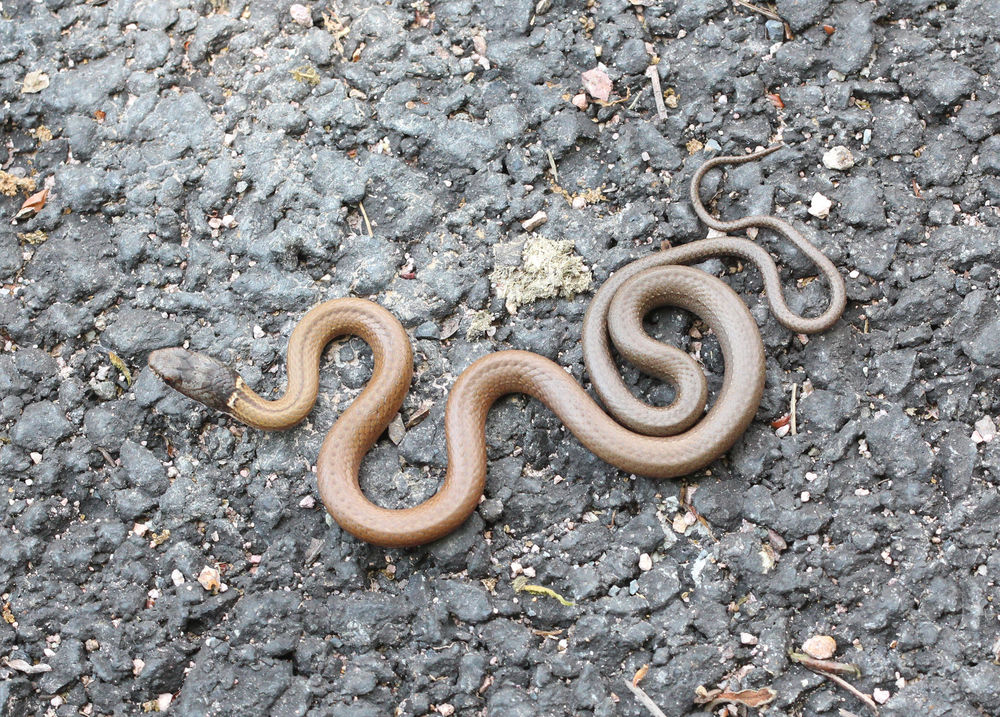 今年白天遇到的第一条蛇。是在清明假期时和家人一起去山里玩,他们摘茶叶、野采这些东西,我在山路上走,在路边看到了这条蛇