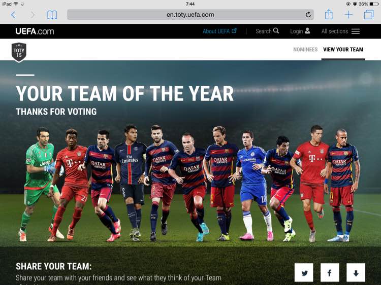 欧足联官方年度最佳阵容票选