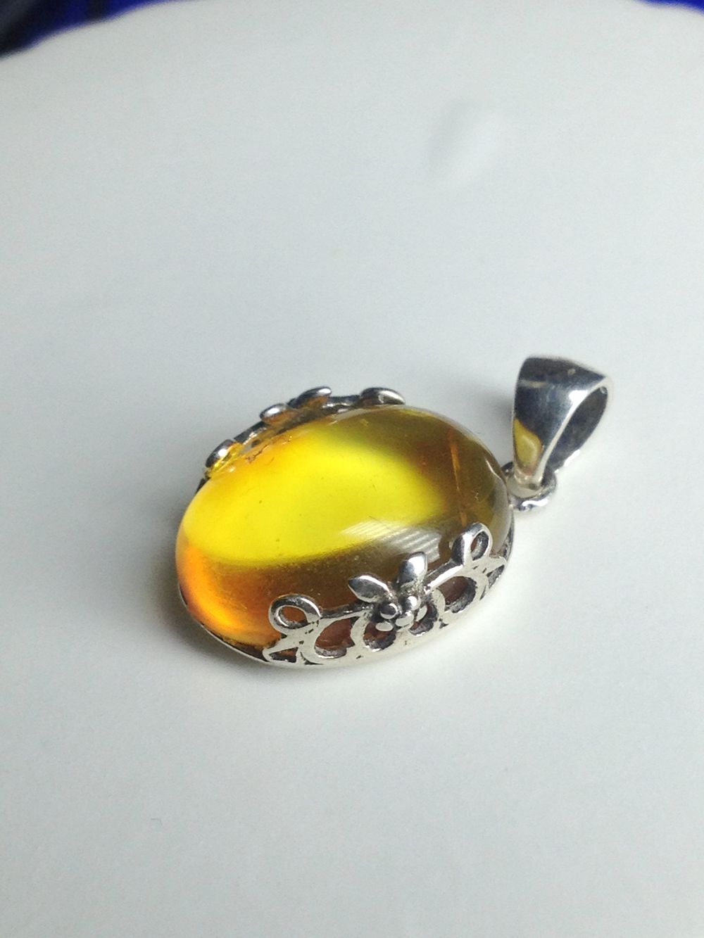 【拍品名称】925银复古花托波海金珀吊坠