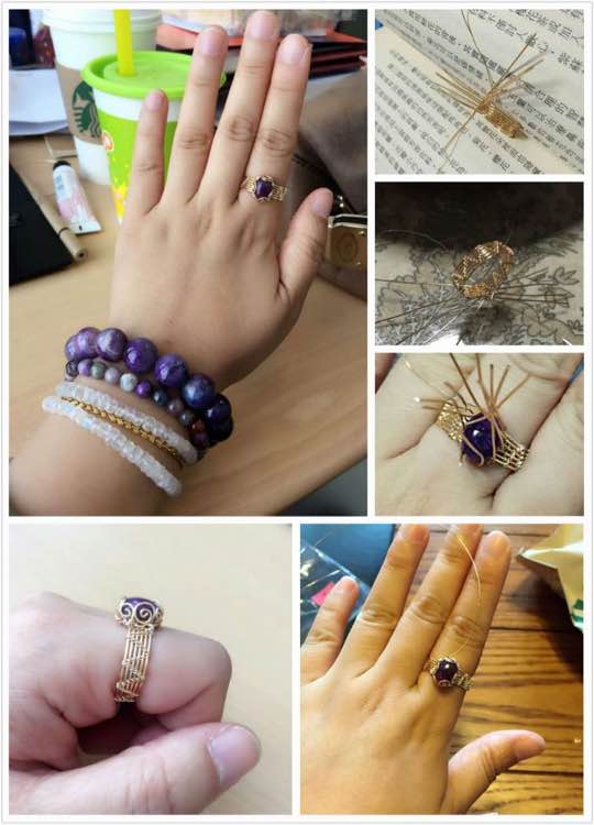 第四颗绕的是水滴戒指。线选细了,眼睛都绕瞎了~