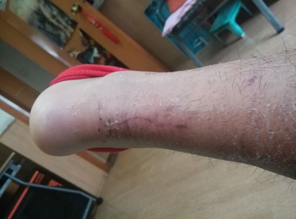 天哥,那块比较大的血痂前天终于掉了,你看这个伤口可以开始泡脚了吗?