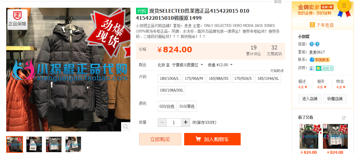看上了这件衣服,不知道这家代码靠谱不,有人在他家买过没? 商场原价1499,但满1600 送400的一件衣服