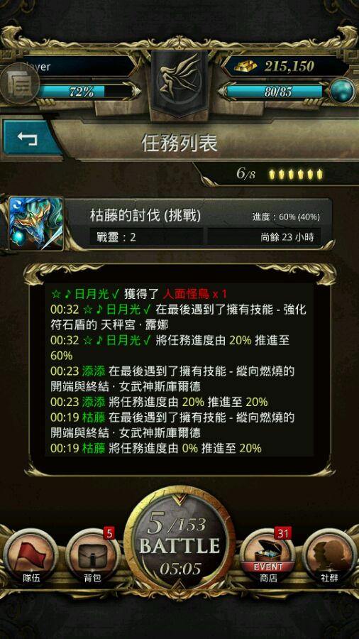 睡前抱着试水讨伐战,看看讨伐难度,没想到第一把就给了人面鸟,安心睡觉