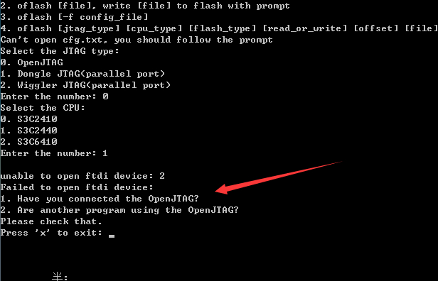 关于oflash烧写程序的问题,连 接好了也并没有其他工程···