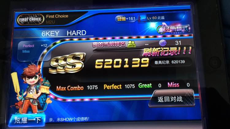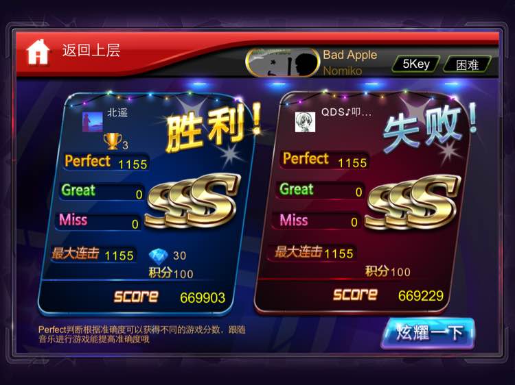 第一把就碰上这种出1小P就可能要输的歌 在高度紧张中打完了