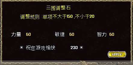 230三围自己调整,三围设置,血量=力量/2+130, 魔法值=默认魔法值