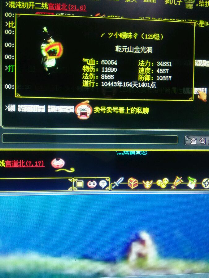 开没多久的区,还有40多天会员,钱庄1000w道具什么的,我就卖个变异天书钱,号和装备都没算钱,点化的睚眦就得400多了,天书100雷怪装备都没算,你去七宝看看,还有别的道具什么的,我也不发图了
