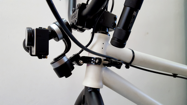 挂单车上时,车横把上是最颠的部位,如果要挂车头,最好是固定车头在立管上,用摩托车夹子,固定时让稳定器稍向前倾后稳定功能发挥最好。