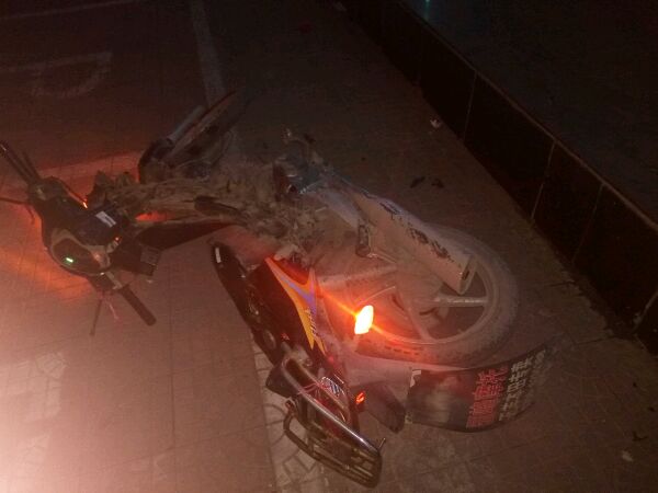喇叭口金威宾馆大奔追尾摩托