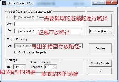 功能介绍1、用于截取3D遊戲中的模型,贴图和著色器(仅限DirectX 8,DirectX 9和DirectX 11程序)