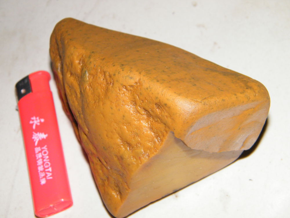 3号鸡油黄磨砂冻,摆件料,805克,1300元