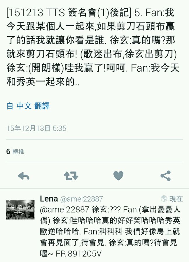 [151213 TTS 簽名會(1)後記] 1.歌迷問徐玄聖誕節時有什麼計畫,徐玄說24號演唱會結束後要跟家人一起在日本度過,家人們也會去看24號的演唱會 FR:myong_myongtt