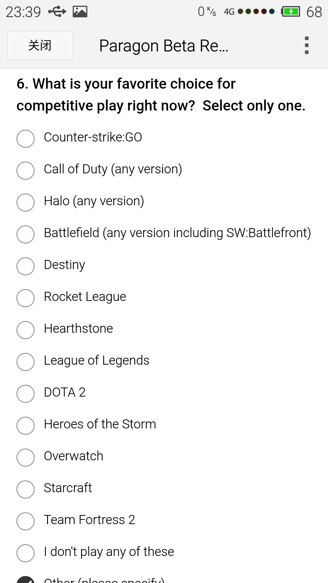 第六题:你如今最喜欢的竞技类游戏是哪一个? (楼主是SM转来的,于是就填了SMITE