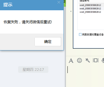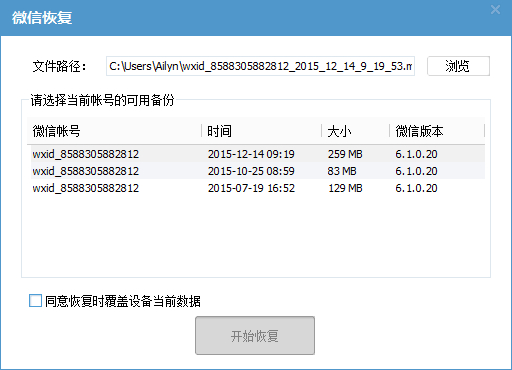 苹果手机系统版本7.1.2,今年7.19和10.25都有备份微信数据,用的同一个微信账号,一直用微信6.1没有升级过。今天12月14号都有备份过最近的数据都是成功的,但是就是无法恢复成功。