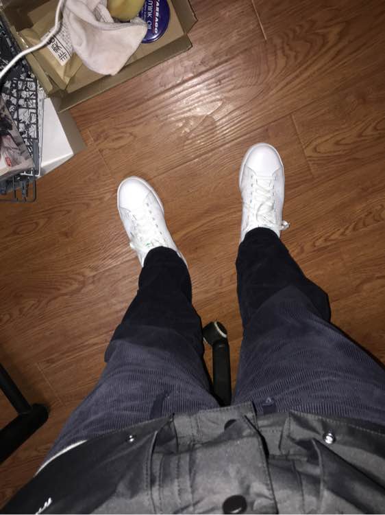 来吧里有段时间了,刚开始也只是为了鉴定才来吧里逛逛,现在发点分享照,灯芯绒蓝色L,原谅我没人帮拍