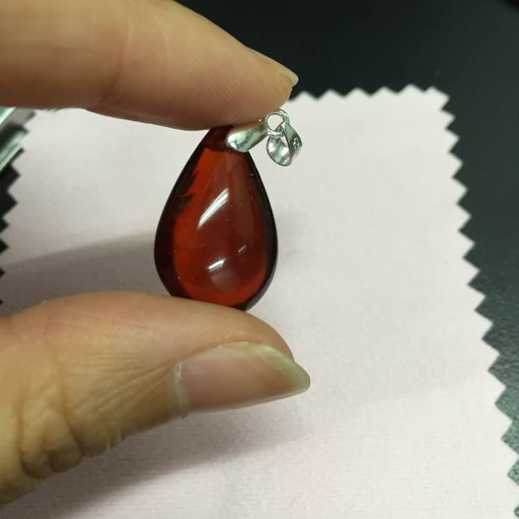 血珀水滴形吊坠,内有一两处小杂,靠近扣子的部分有个小裂,带925银链bh300