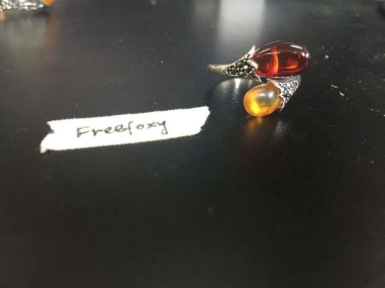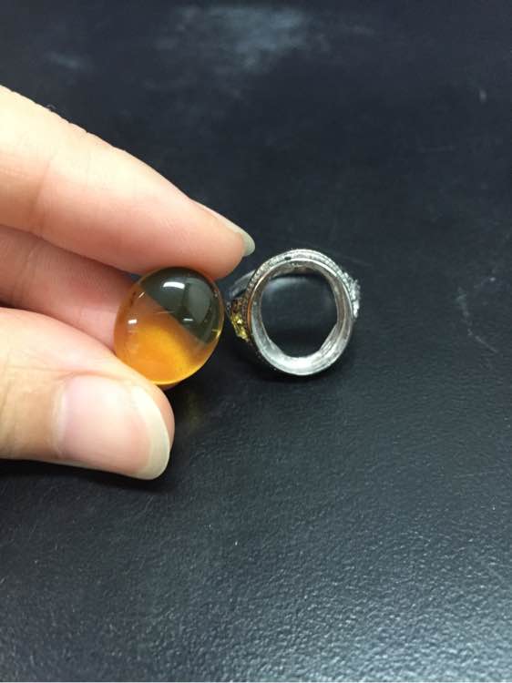 缅甸血珀+金珀戒指,925银托,bh120