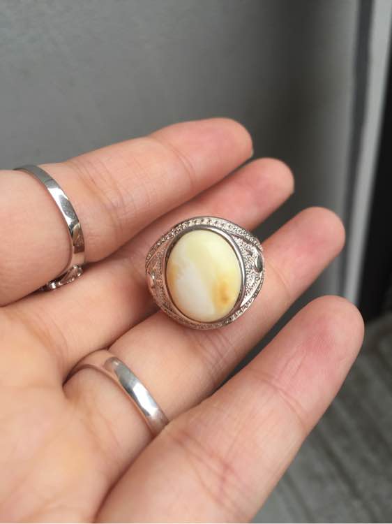 白蜜戒指,很厚实的990银活托,一半骨珀一半白蜜,bh260