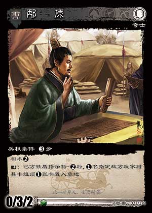 cy023邴原,2个铁盾指示物削对面1卡;曹植,7个指示物削对面5卡。看似曹植是赚了,但是曹植这个要憋大呀,7个指示物怎么来?另外纯步场上肯定是要站lh030程昱的吧?那邴原就是3指示物换2卡,而曹植是8指示物换6卡,差距就拉的挺小了。
