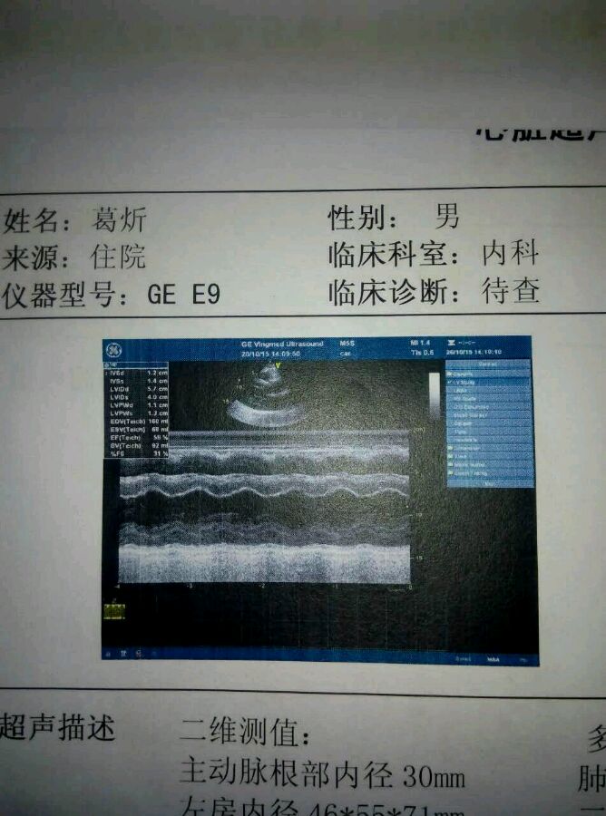 回复 辽东大虎 :有心脏彩超拍照上来。