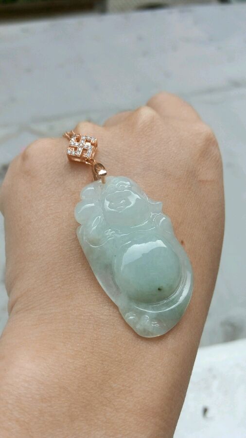 冰种宝宝佛,36*28*4mm,210.送银扣