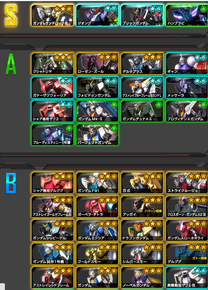 参战机体一览 ☆为家用版初次参战
