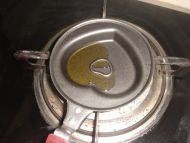 2.放适量植物油于煎蛋锅里,放在燃后灶上烧热