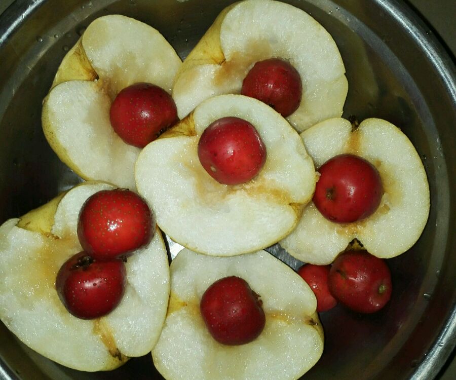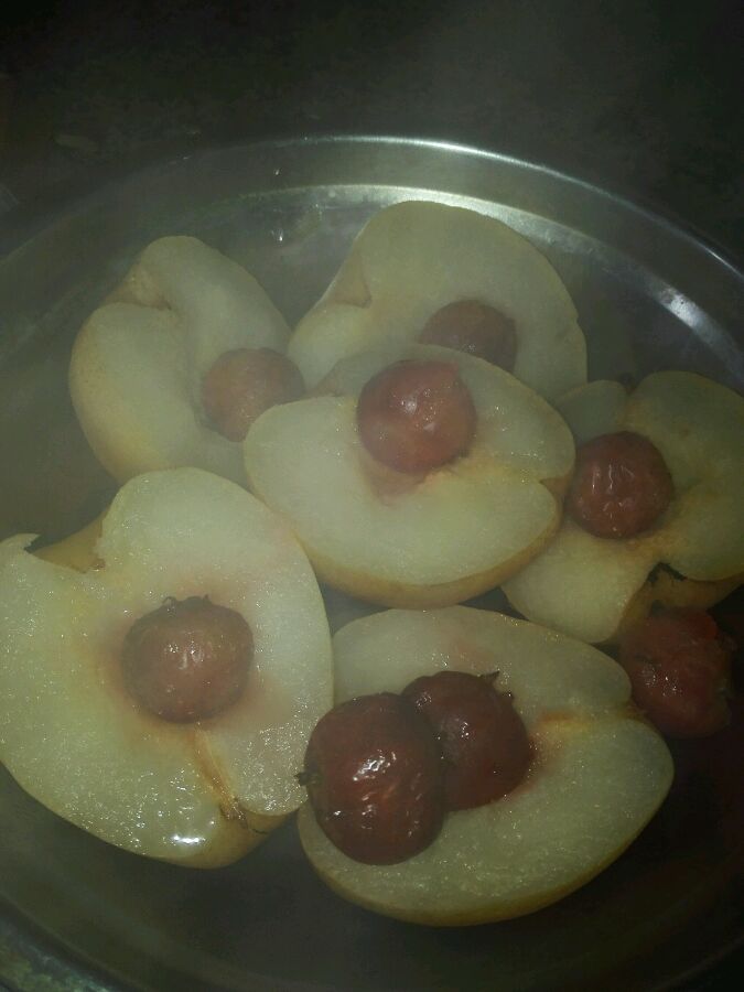 家里的梨,放了好几天,我妈让我蒸蒸它