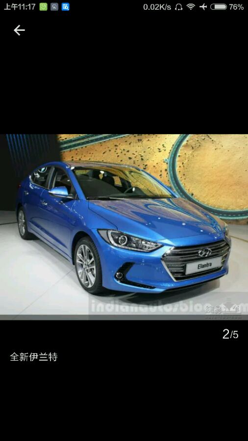 测试车目前处于高度伪装状态,只能看到前脸部分的上下进气格栅都是横条格栅的设计,不排除将采用日前曝光的全新伊兰特(下图)那样的大嘴风格脸谱。