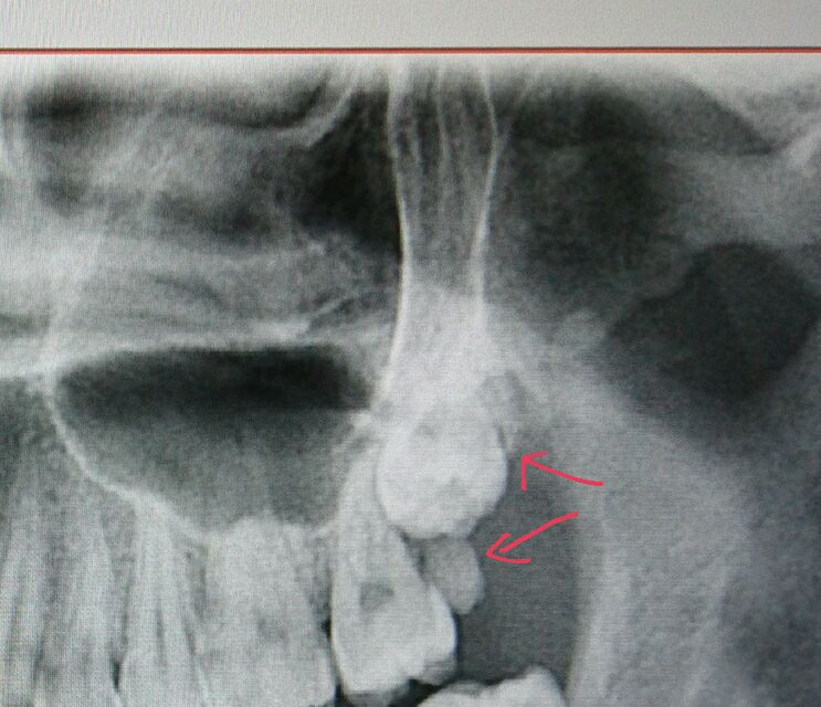 今天医生说把下面这个干掉,挤在上面的这颗应该能长下来