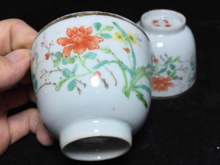 【交易】《民国余乾泰制;粉彩花卉茶杯一对》