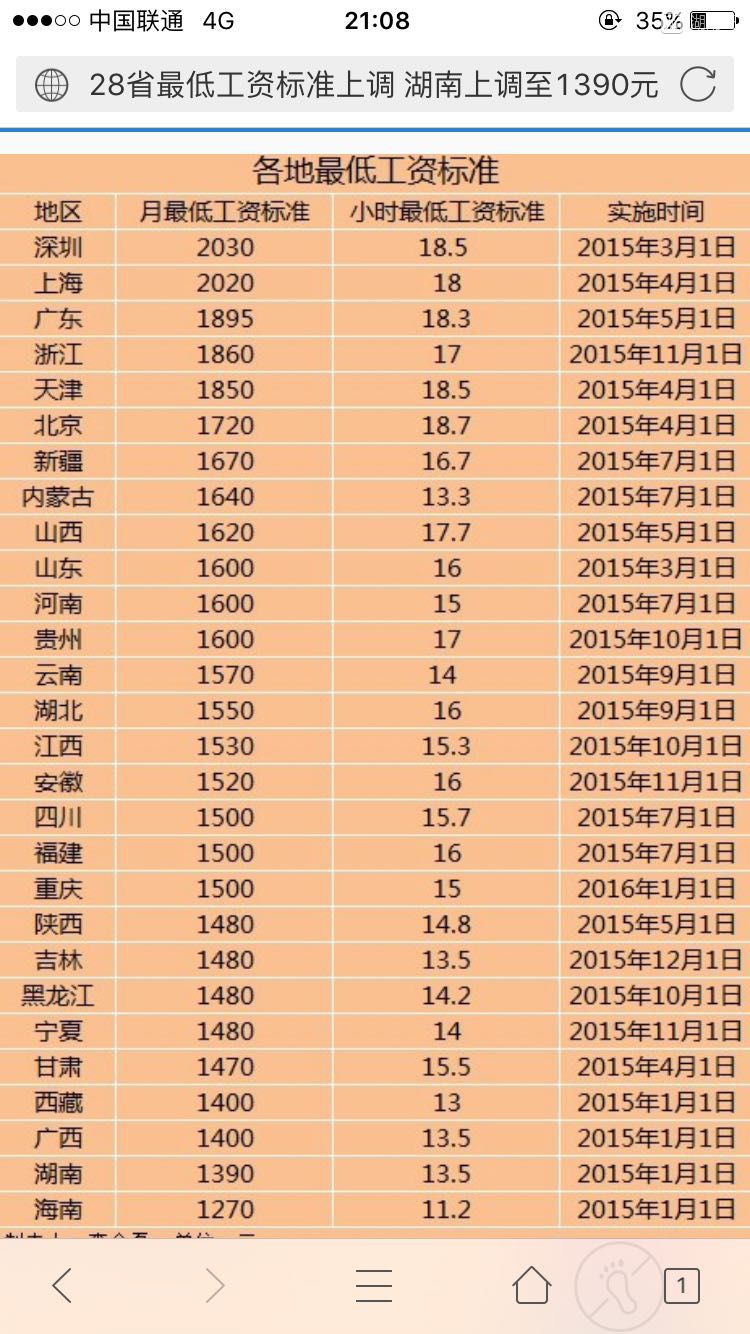 我湖这最低工资标准,怎么比隔壁邻居都还低