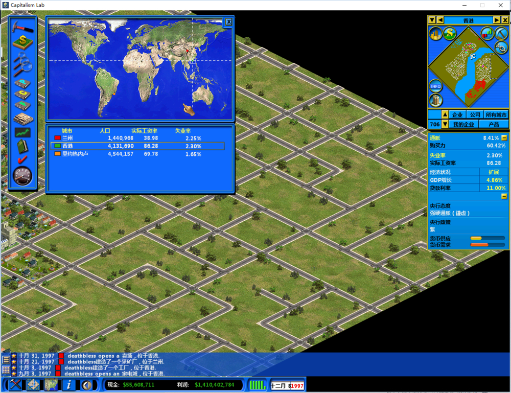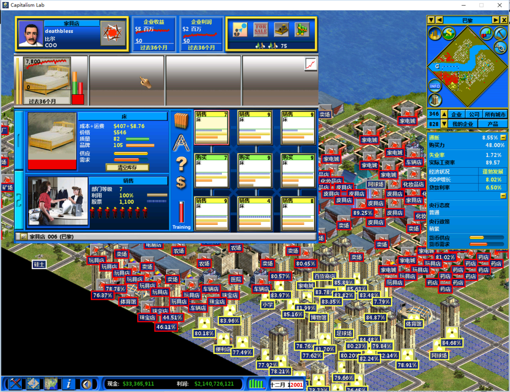 另外就是同一个产品的不同价格销售,的确是有这种情况,但是一般来说你开了真实经济的话,物价和通货膨胀会导致价格波动,所以一般都是把零售扔给COO来处理的,何况还能加等级,COO定价一般来说是比较趋向于统一的,所以一般不怕麻烦的话单独自己开个大商店手动调价能把过剩产能消耗掉(比如你的COO定价100占了大盘的3/4,但是产能过剩,你就可以自己开个店手动调成50块继续抢剩下的1/4,但是前提是你成本别高于这个,否则不是自己烧钱玩吗)