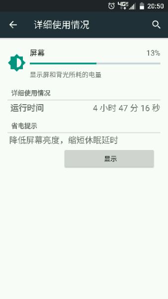 装了框架用绿色守护,屏幕自动亮度,微信qq不休眠, 魔趣的ROM ; 在电没有完全充满的状态下,看一场电影,然后偶尔微信QQ 剩下的时间一直是小说。亮屏10小时以上。