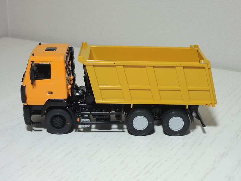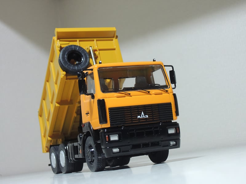 白俄罗斯MAZ-6501自卸车模型,比例1/43,出自SSM。MAZ-6501系列于2008年推出生产至今,是基于2007年推出的三轴MAZ-6312卡车的基础上发展的自卸车,接替之前的5516系列。6501载重量13吨,可配326-435匹马力柴油发动机.