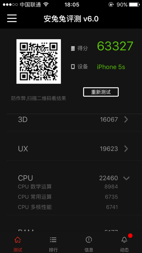 5s安兔兔6.0跑分
