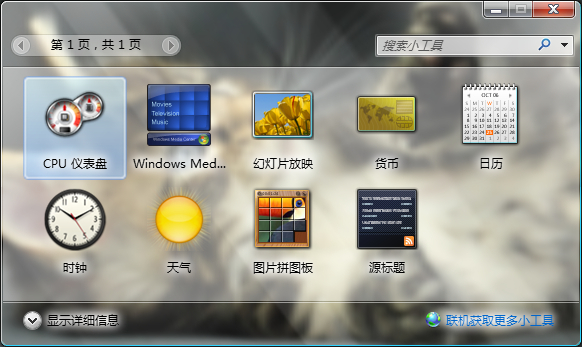 小工具整体玻璃框。