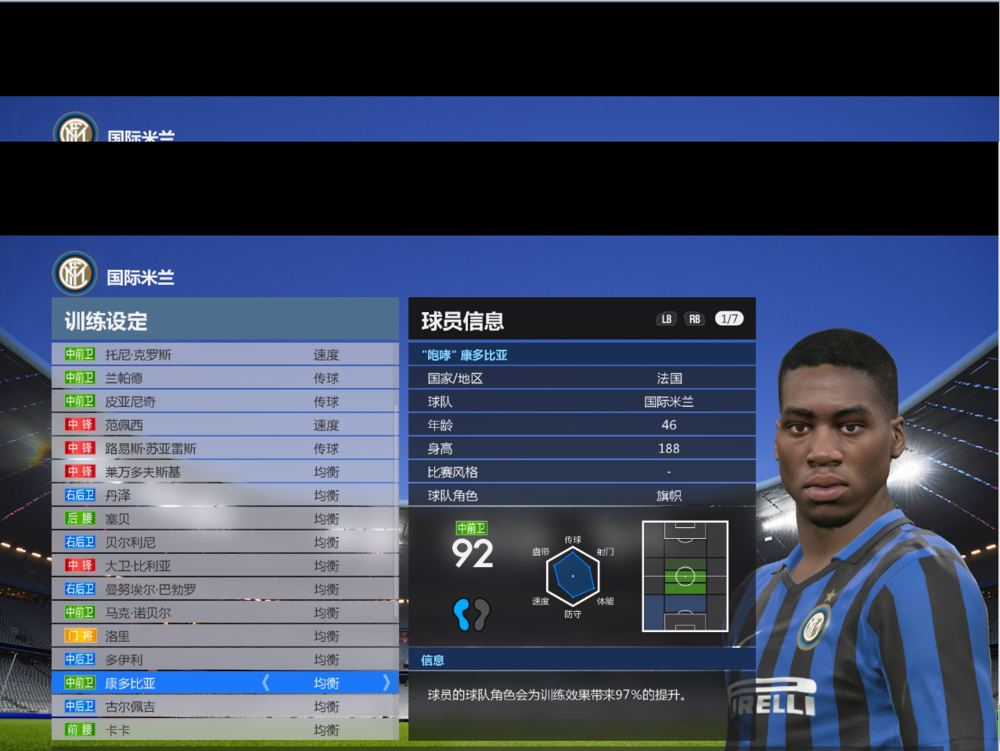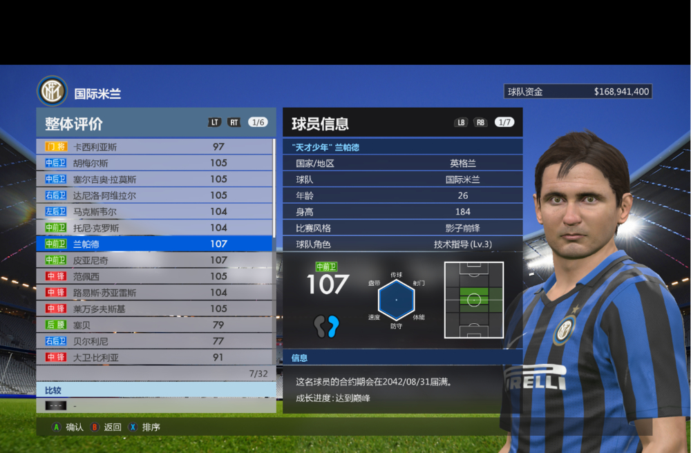 中前卫这个位置练满总评最多107