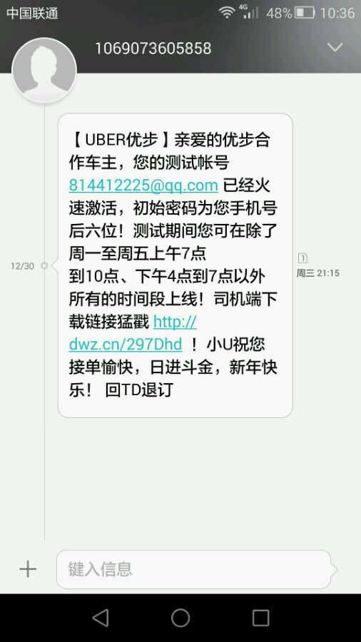 昨天优步给我发短信,司机端已激活了,可以接单,但是我登陆司机端提示未激活!这是为什么呢?求解答!