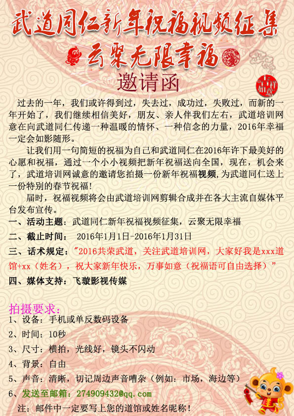 武道同仁新年祝福视频征集 云聚无限幸福