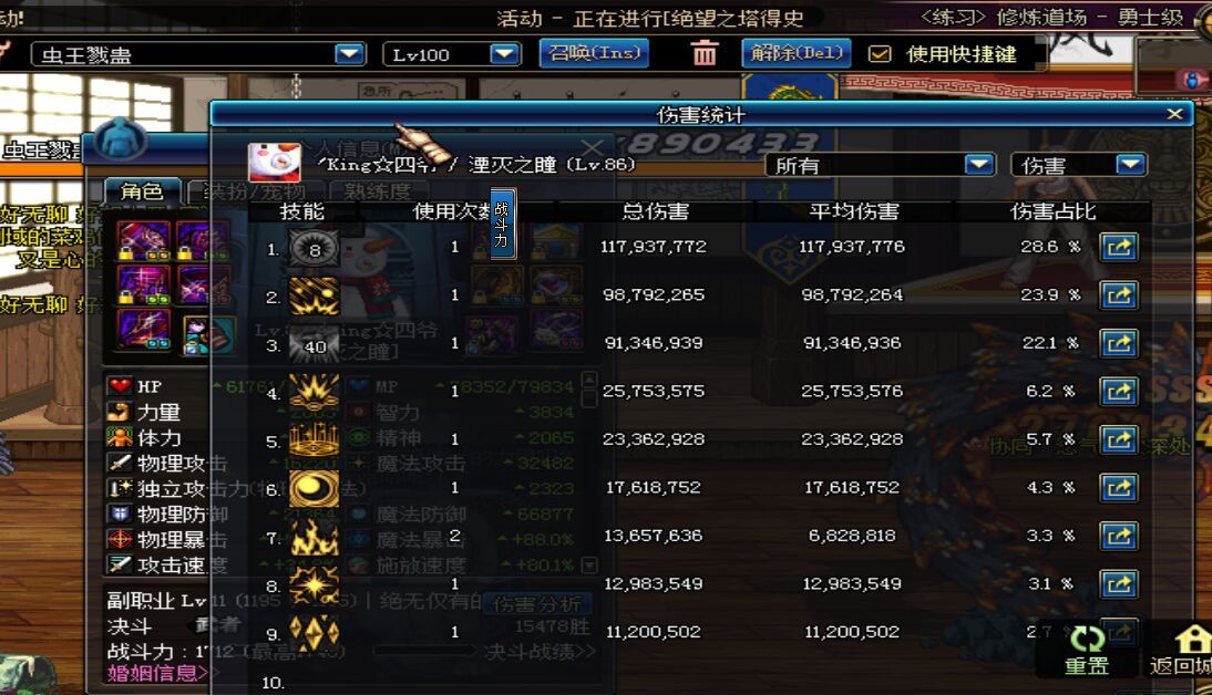 这是高级宝石的百级虫王伤害图。吃药了的