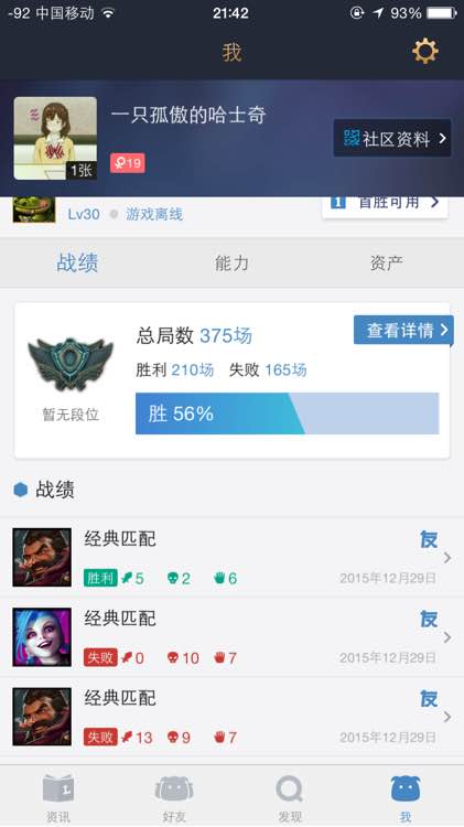 电一30级 20多个英雄 1个绝版皮肤 打了65场 胜率55以上!