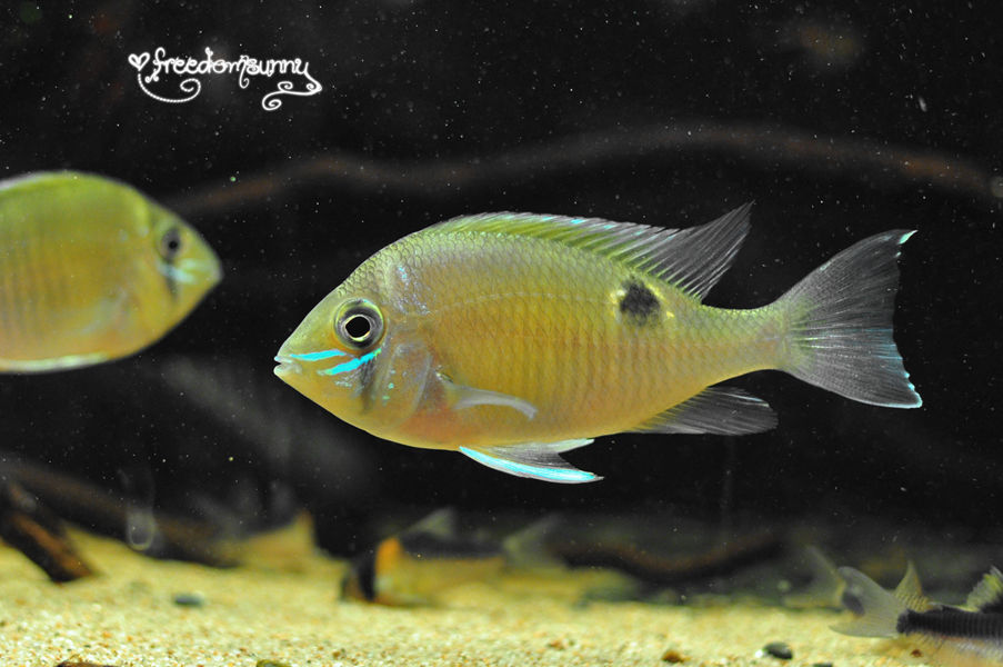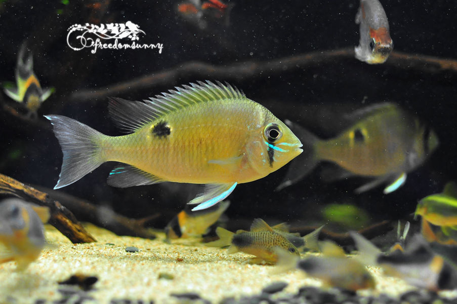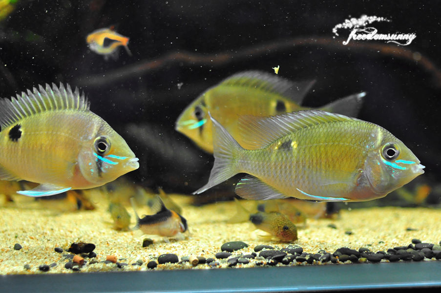 好漂亮啊,水清鱼靓造景也好。黑背景不发乌。楼主是女的?养的真不错。