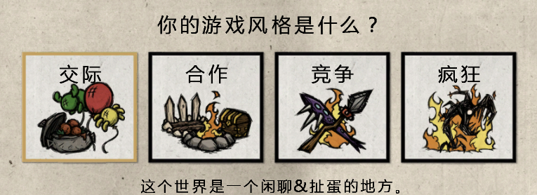 第一种大概就是普通的沙盒服,第二顾名思义就是生存了,第三PVP/格斗服,第四应该是困难吧,很混乱的那种