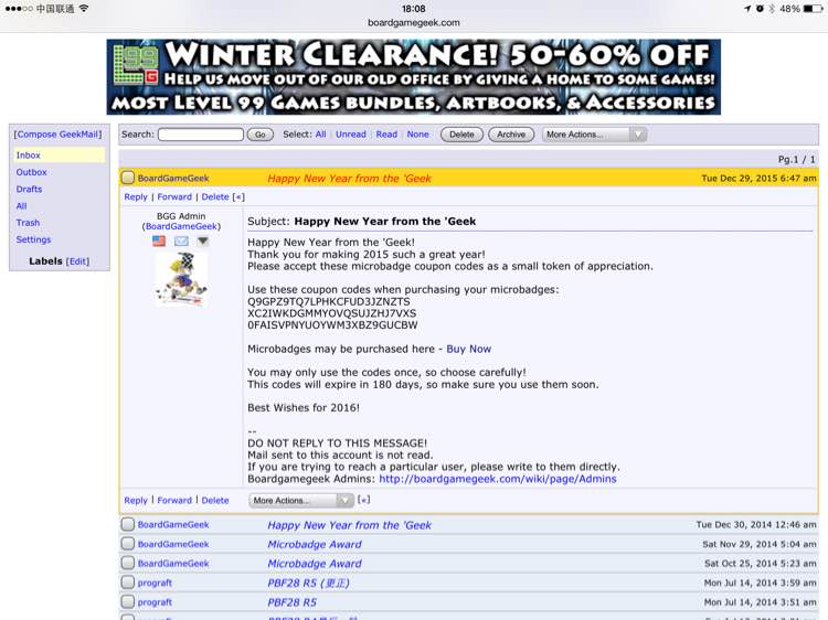 每年新年一共有3个兑换码,能换3个徽章,有效期180天,前提是你有BGG的注册帐号