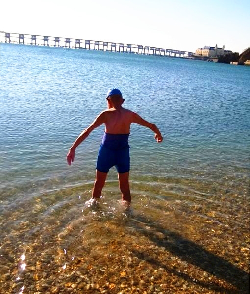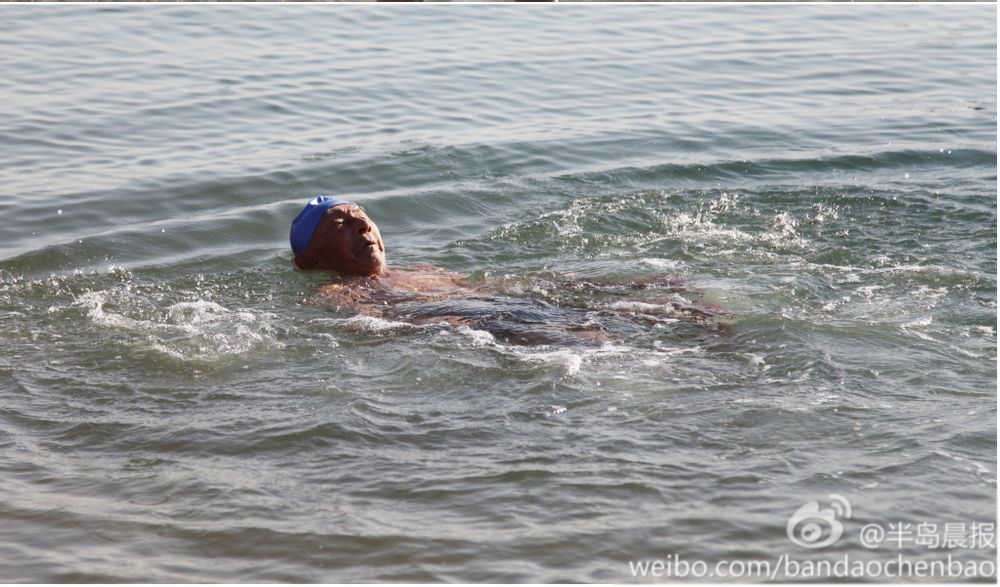 别看老人很瘦,却精神饱满,红光满面,下水前的准备活动有模有样,振臂下腰等动作一点不比年轻人差。今天,老寿星在6度海水中仰泳了1分钟。在场偶遇的游客,无不对老寿星冬泳的壮举而震惊,当得知今天是老寿星95周岁生日,泳友和游客们都伸出大拇指,在喝彩中为卢老祝寿!纷纷与老寿星合影留念,粘粘喜寿之气。