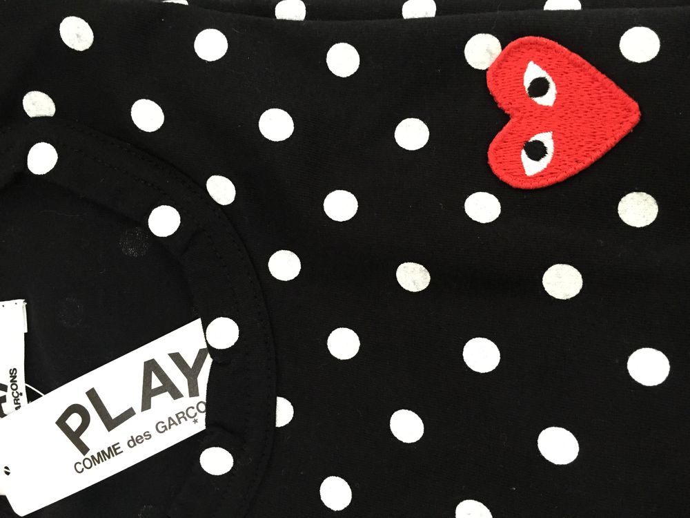 刚代购的PLAY圆点黑T,点点胶有点粘粘的手感,不是纯白,有点泛黑,领子皱皱的。衣标也很次的感觉。请问各位大神,这是否为正品?