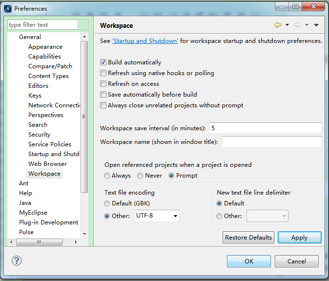 myeclipse10设置workspace的默认编码格式是UTF-8