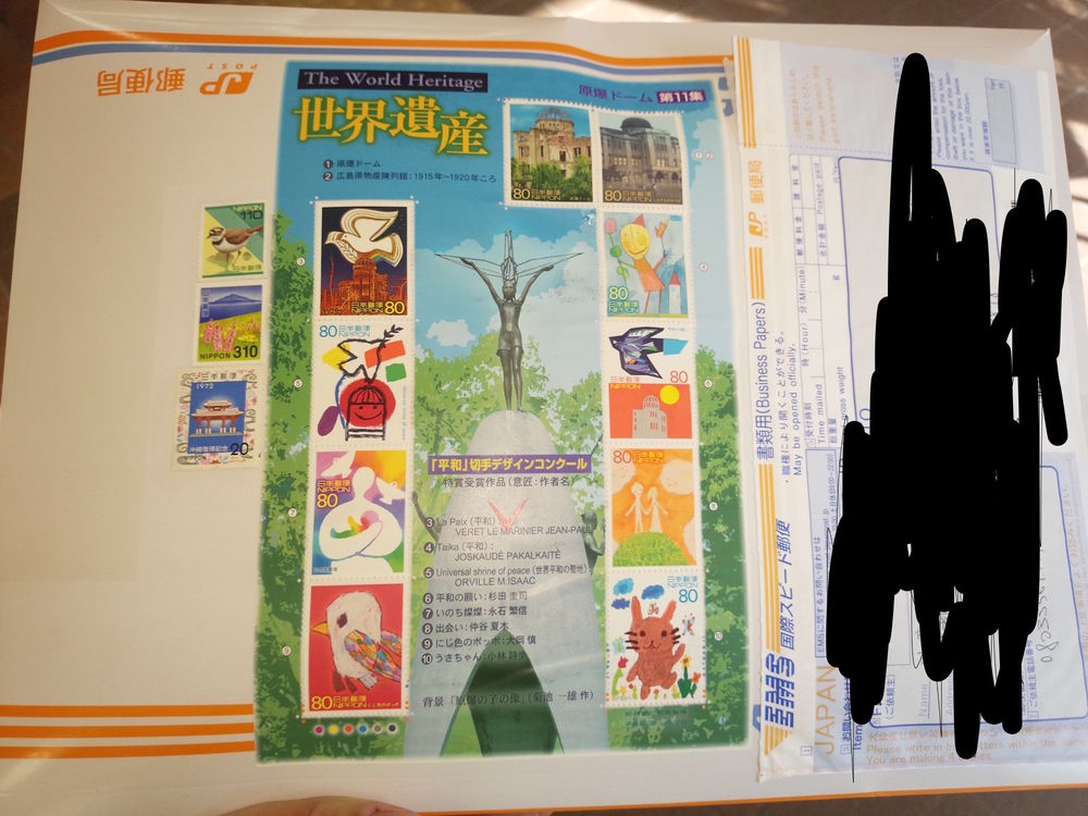 从日本ems邮寄,邮费70人民币(可贴日邮版张邮寄)